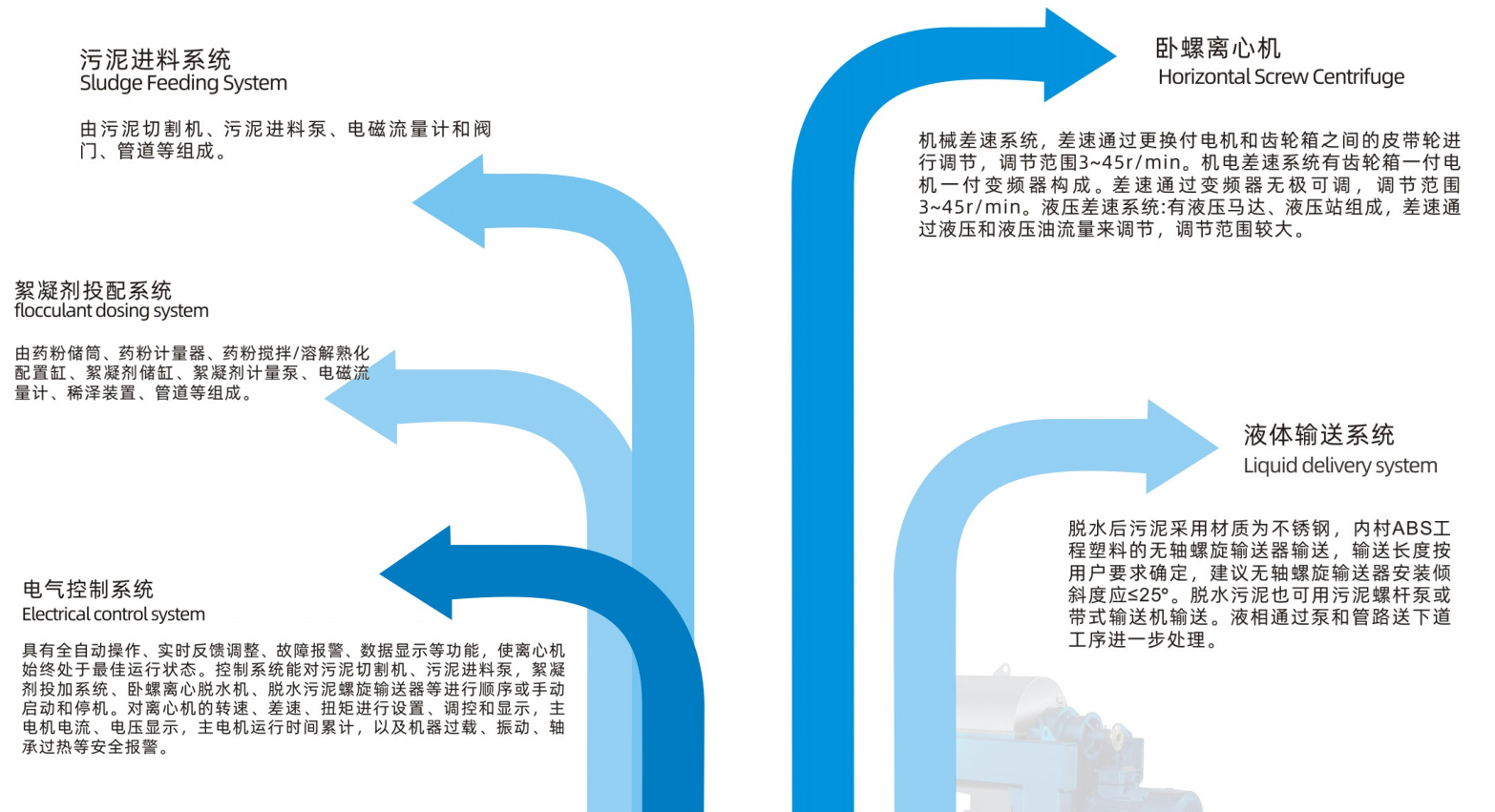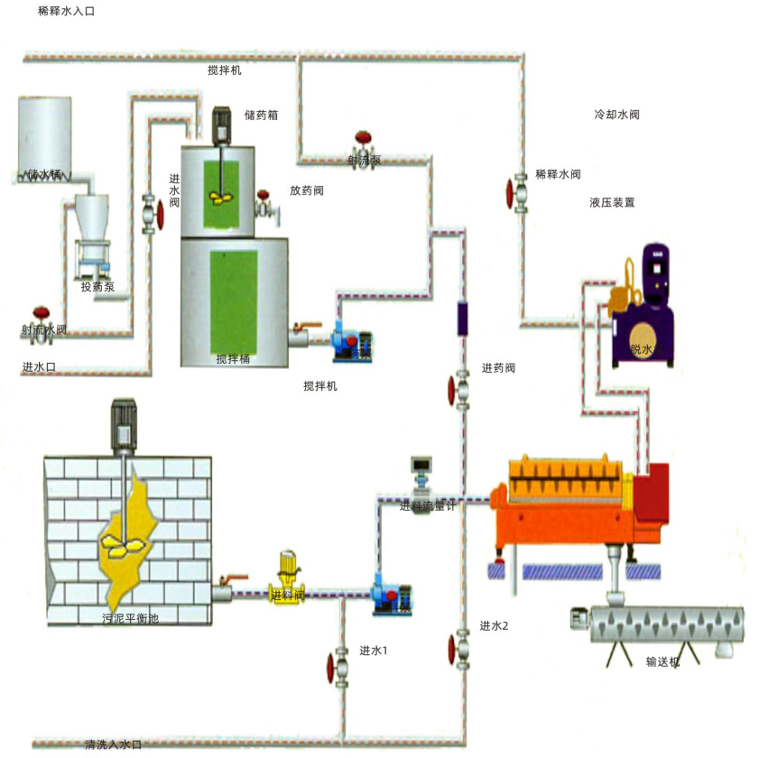 ▶ The complete set of sludge dewatering equipment is composed