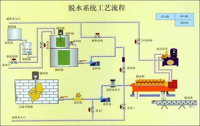 The flocculant (powder or liquid) is diluted in proportion and fully dissolved and stirred in the chemical preparation tank, then enters the chemical storage tank. Controlled by the dosing pump, it enters the dewatering machine at a flow rate determined by the dewatering process requirements. After being diluted to a concentration of 0.08 - 0.12% with dilution water, it is mixed with the sludge to be treated and flocculated into flocs. After the sludge is dewatered by the main dewatering machine, the clarified sewage is discharged through the clarified liquid pipeline, and the dewatered sludge is continuously discharged from the slag discharge port of the main machine. Then it is transferred to the designated location or directly loaded onto vehicles for outward transportation by a flexible shaftless sludge conveyor (or sludge residue transfer pump). The continuous input of the sludge to be treated, and the continuous discharge and transportation of the clarified liquid and dewatered sludge are a fully automatic treatment process. The dosing, feeding, sludge transportation, and the operating status of the main machine of the complete device are all detected and controlled by the fully automatic PLC electro - hydraulic control box, making the device a fully automatic complete operating unit.